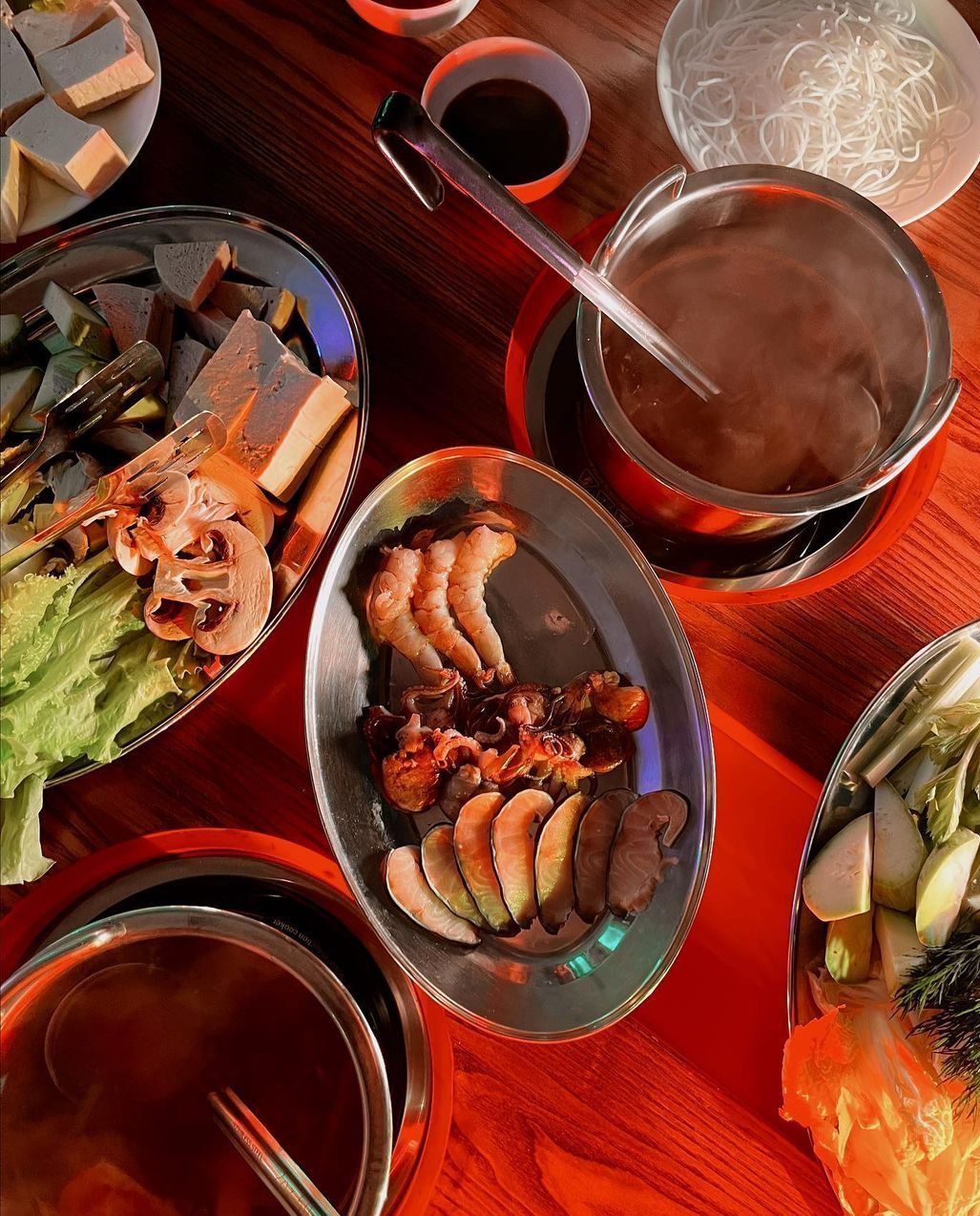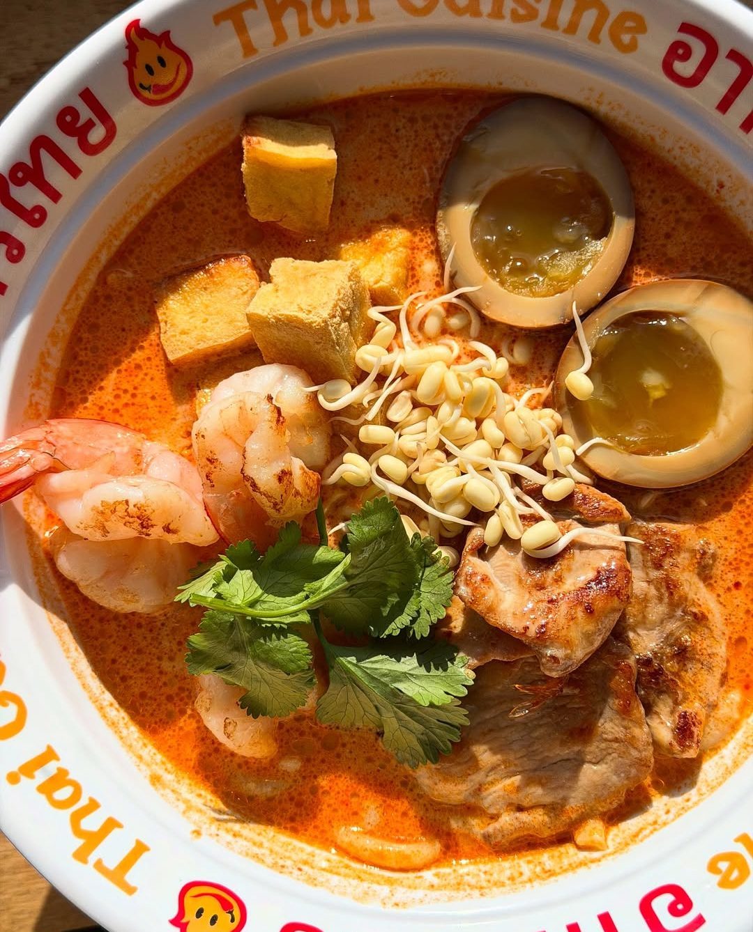 Из еды здесь можно попробовать традиционные блюда Таиланда, Вьетнама и Малайзии. Например, кокосовый суп лакса, курицу в кисло-сладком соусе, вонголе с чили, и, конечно, фо бо и том ям.