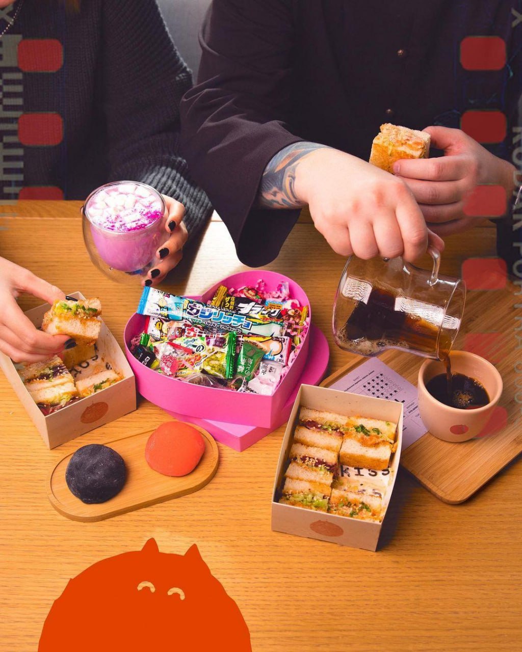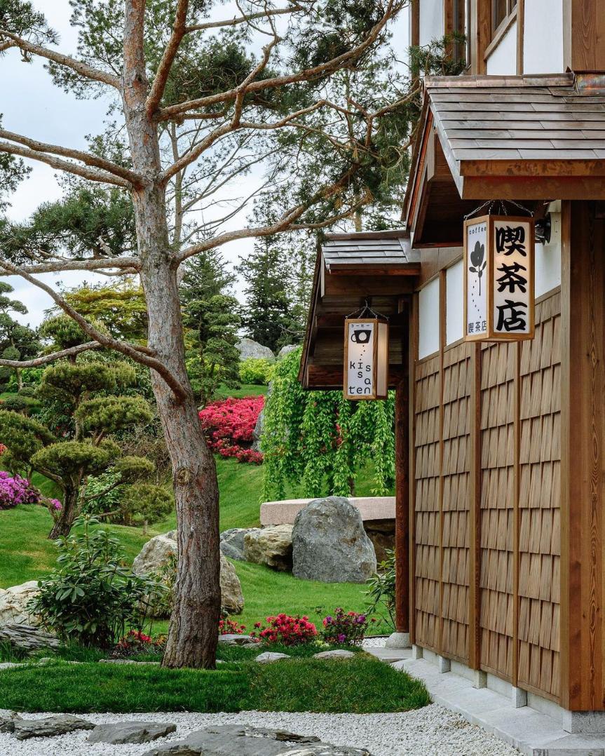 Кофейня расположилась прямо в Японском саду и выглядит всё это так, будто ты оказался в одном из мультфильмов Хаяо Миядзаки. Интерьер заведения оформлен в традиционном стиле японского чайного дома Матия, а в меню — настоящее путешествие по Японии: сэндвичи сандо, лунные пряники и варабимоти.