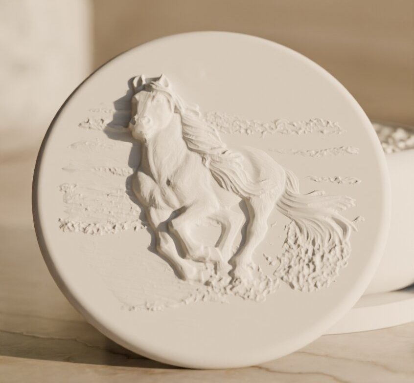 Тепло, уют и свет — кажется, это идеальный подарок на зимние праздники! Биокамин из петербургской мастерской VeyaDecor изготовлен из искусственного камня, его дизайн максимально базовый, благодаря чему он отлично впишется в любой интерьер. Крышка камина украшена изображением лошади, которая является символом 2026 года. Заказать такой можно на Ozon и «Яндекс.Маркете».