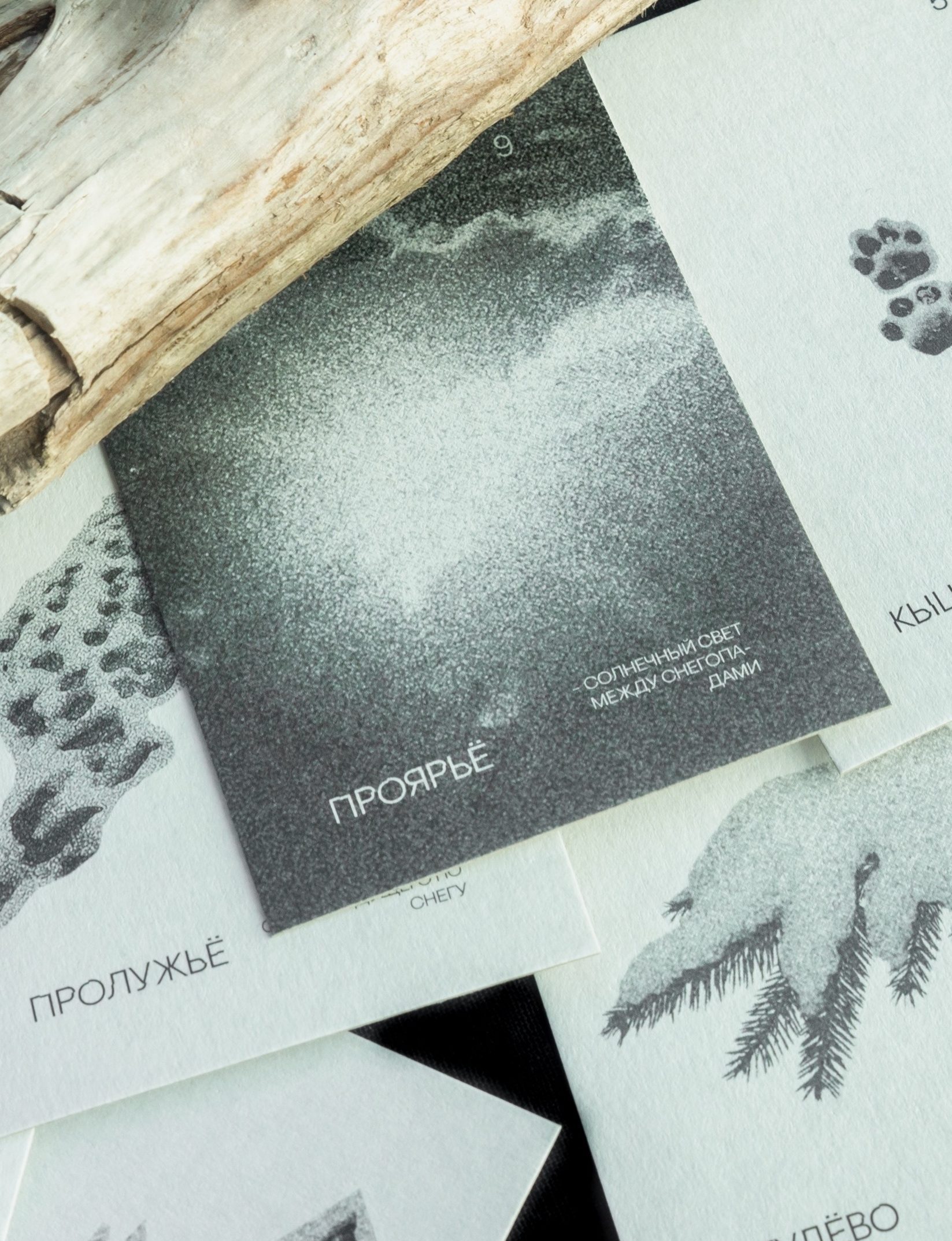 В наборе 32 карты. Каждая из них посвящена какому-то виду снега или льда, которые есть в поморской говори. Например, вы узнаете, что такое проярье и кыца и как эти явления интерпретируют создатели карт. Украшено всё это современными авторскими иллюстрациями и архивными снимками из музеев Архангельской области. За картами — на Ozon.