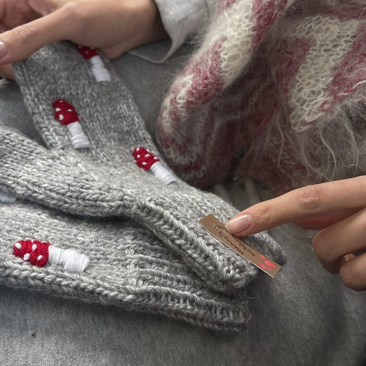 Все вещи бренда «От Ба» уникальны, потому что каждую своими руками вяжет самая настоящая бабушка. Проект работает с сотней мастериц из разных уголков страны: вы получаете тепло, а бабушки — любимое занятие и дополнительный заработок. В каталоге более 20 моделей варежек: однотонные, с узором, но наши любимые — с мухоморами от мастерицы Светланы Фёдоровны из города Новозыбкова.