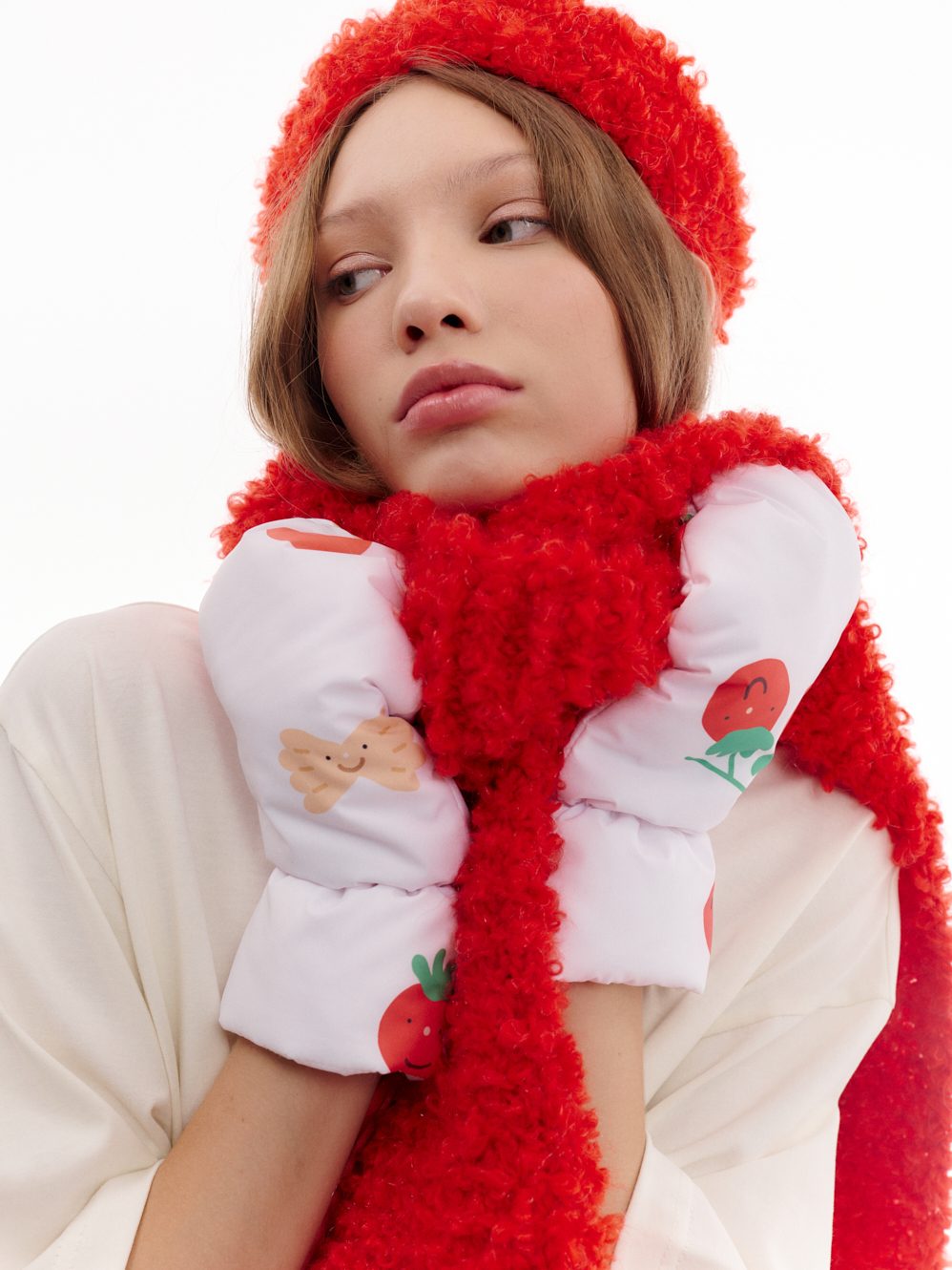 Это коллаборация красноярского бренда с петербургской художницей Машей Лузгановой. На варежках улыбаются помидорки черри и макароны-бабочки — наверное, для тех, кто в суровые морозы вздыхает о солнечной Италии. Внутри рукавичек — утеплитель слайтекс, поэтому руки не замёрзнут даже в сибирские -35°С.