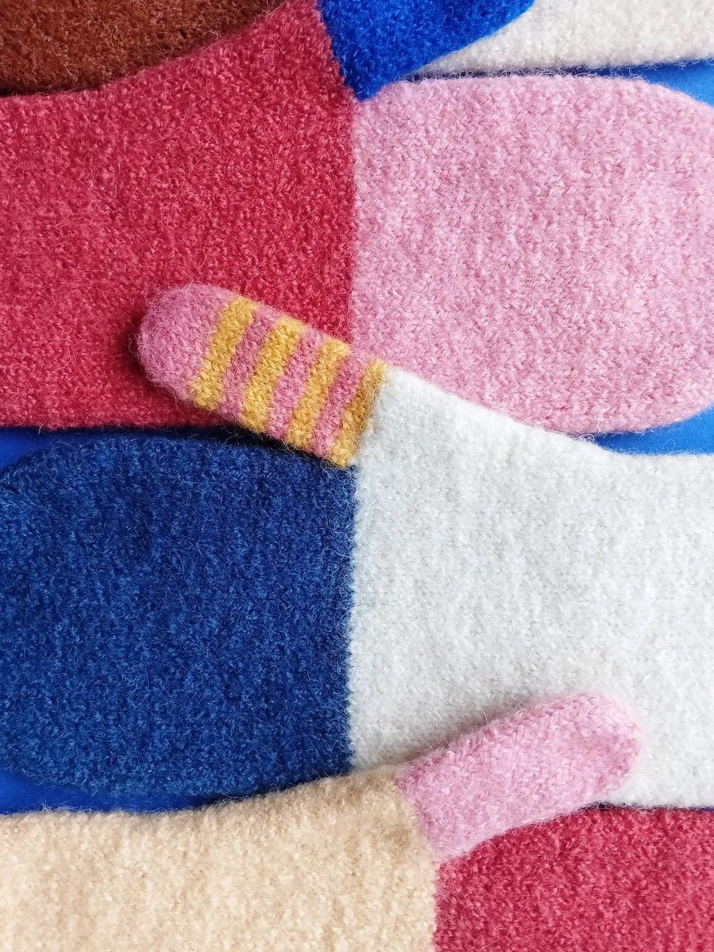 Варежки для тех, кто никак не может определиться с цветом. В мастерской «Помаши маме» вяжут рукавички в любых цветовых сочетаниях. Мастерица Юлия Ковальковская для одной пары варежек иногда выбирает до пяти оттенков, а пальчик раскрашивает в полоску.
