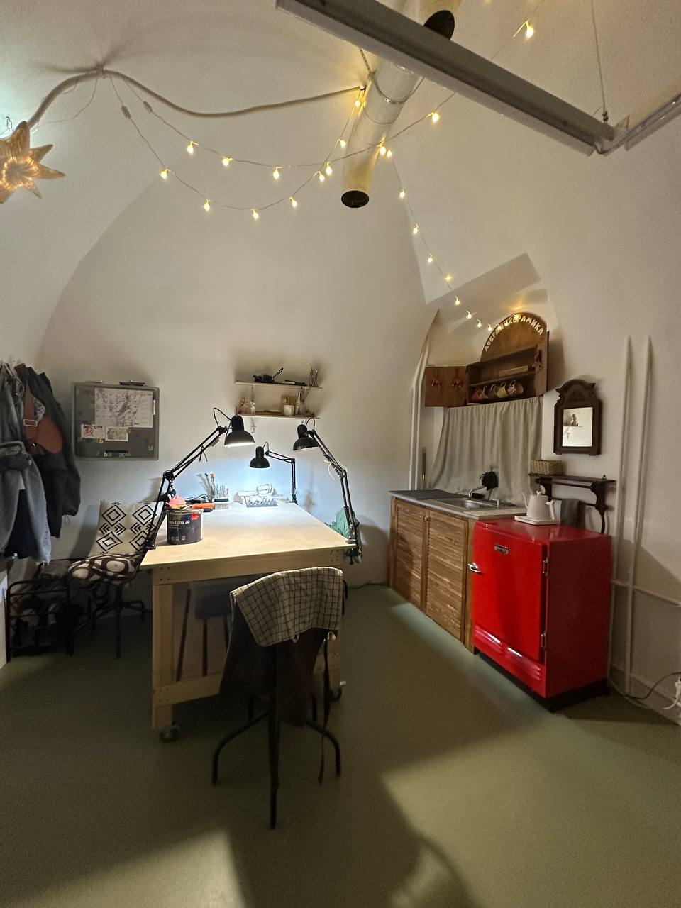 Обустройством мастерской занялись сами. Виктор залил полы, смастерил шкафы и столы, за которыми проходят мастер-классы, собрал кухню, установил раковину. На всё это ушло около двух месяцев.