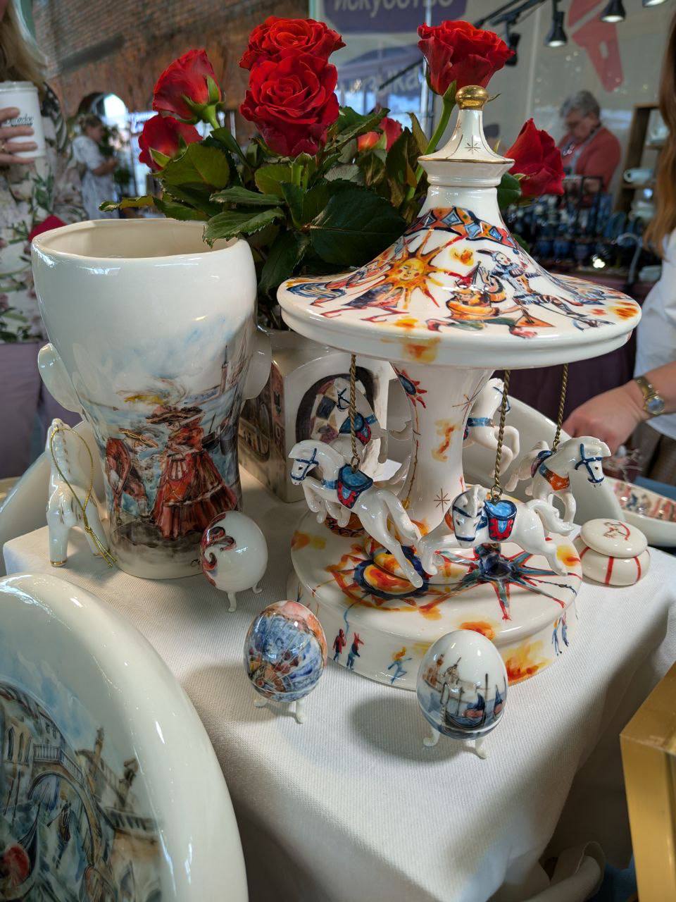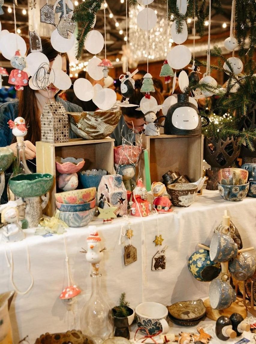 Анна Кравченко вместе с командой создаёт интерьерную керамику, светильники, вазы, фарфоровые игрушки, украшения и коллекционные керамические калейдоскопы — всё в узнаваемом стиле Myata ceramics. Мастерица экспериментирует с росписью и образами, создавая утончённые вещицы. К Новому году тут есть, например, разные игрушки на ёлку, но в центре внимания — символ наступающего 2026-го, лошадь. Они есть в морковках и клубничках, с позолотой, под хохлому, с сердечками… Очень красиво!