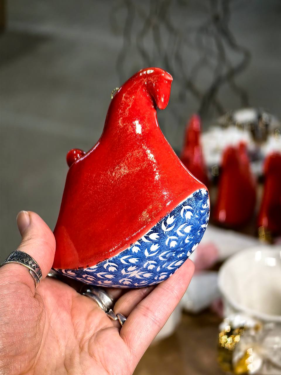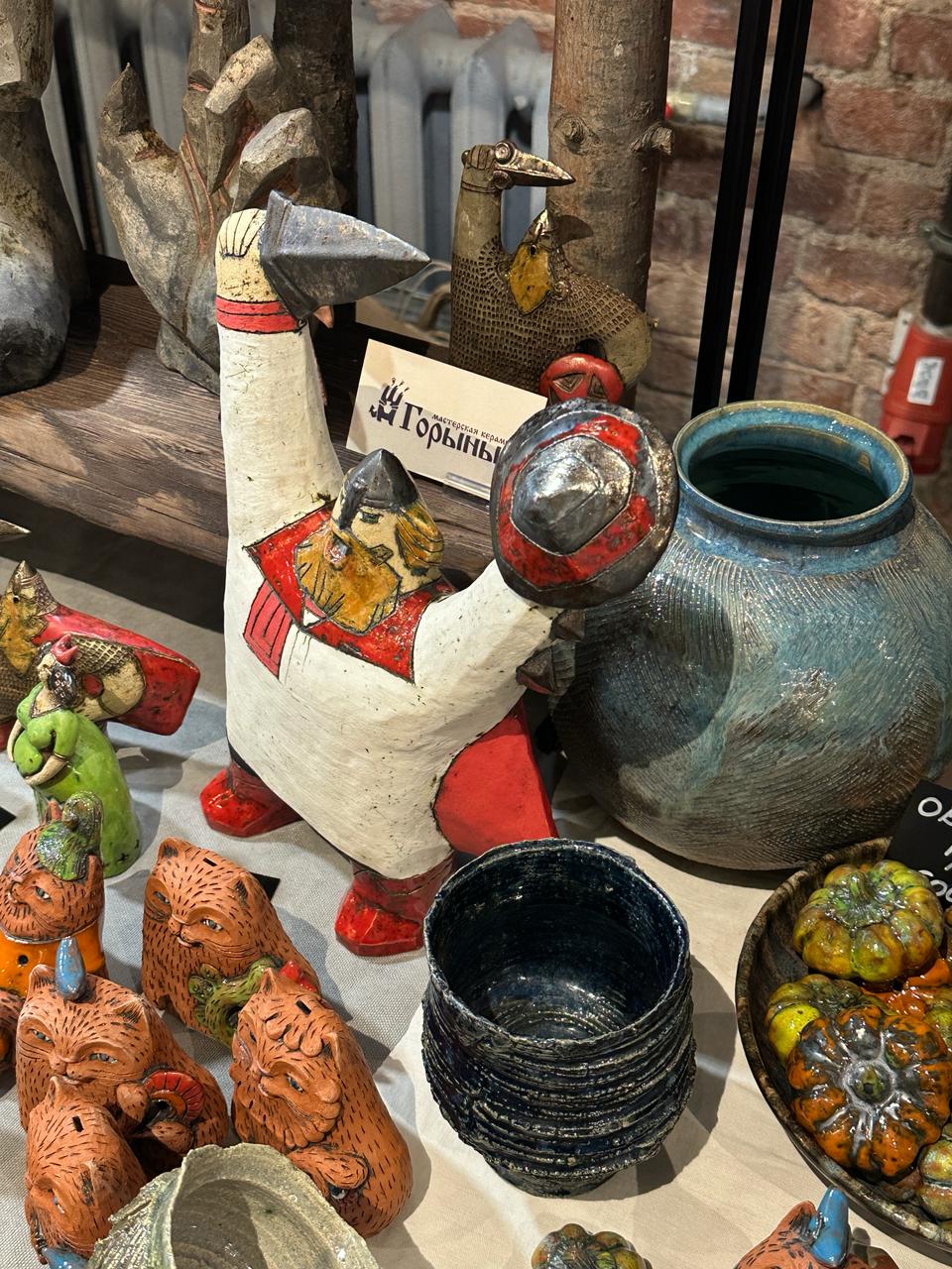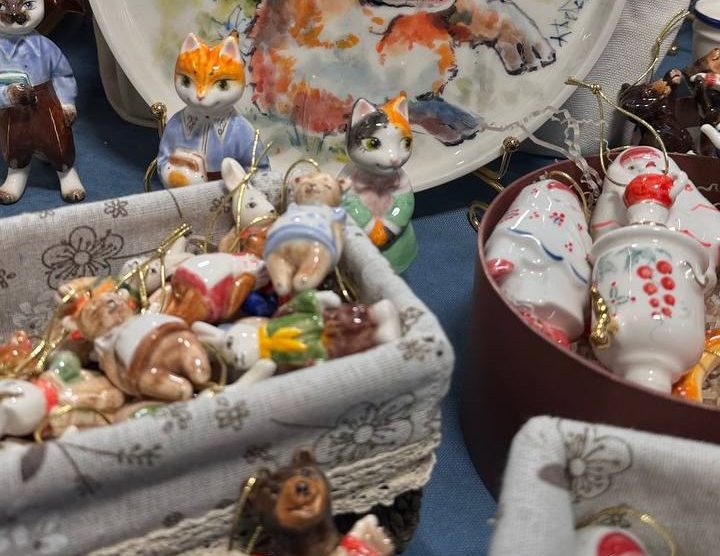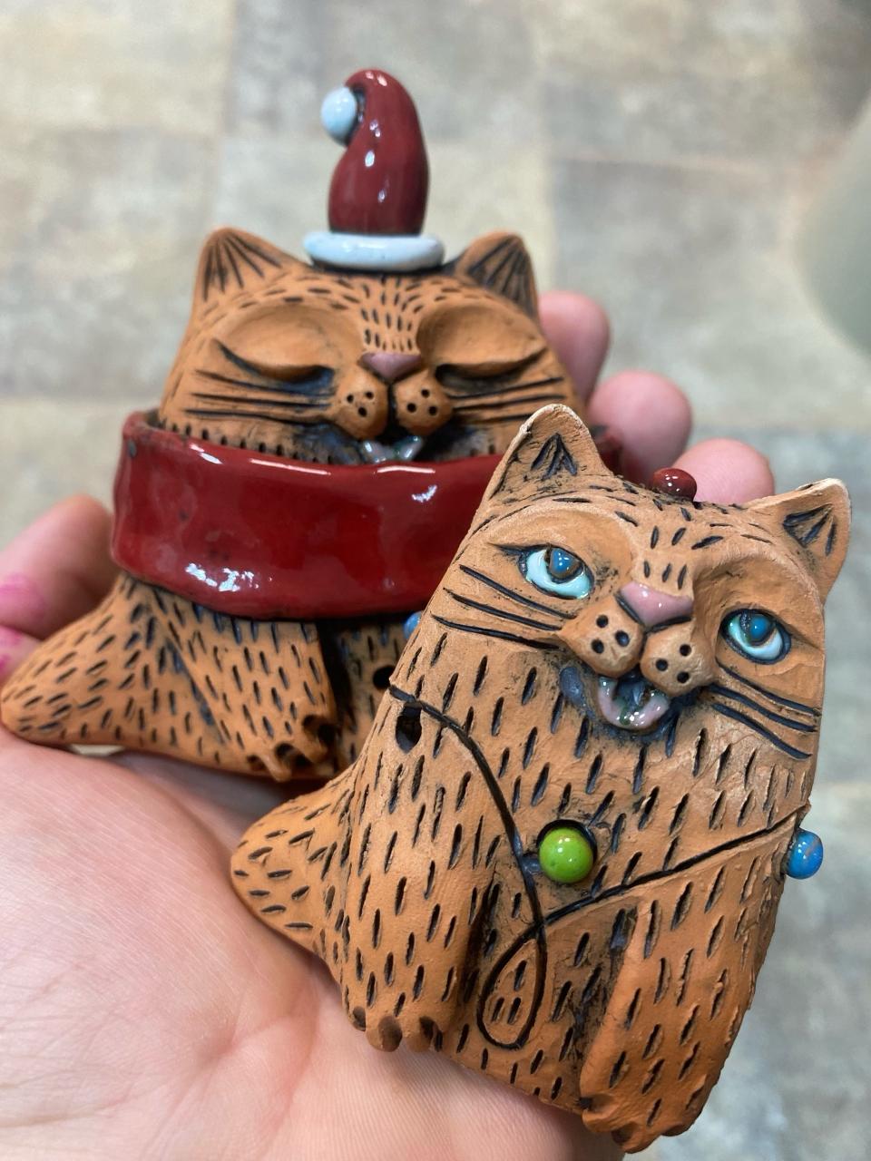 Мастерская керамики «Горыныч» вдохновляется сказками и создаёт разные необычные вещицы, например, тут всегда можно найти духовые инструменты — свиристели и окарины. Ну а к праздникам мастера уже «посадили» ёлочки и нарядили своих персонажей — на богатырей примерили шубы Дедов Морозов, а котов утеплили шапками и гирляндами.