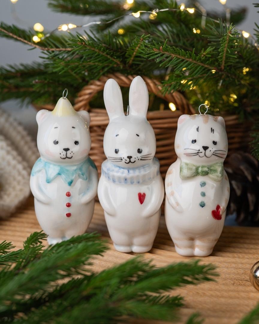Основательница тверской мастерской «Люба и волк» Любовь Шилова в соцсетях бренда пишет, что при подготовке к новогодним маркетам «поймала волну юмора, милоты и нелепости». Такое вот настроение у её игрушек и посуды из фарфора, которые украсят праздничные деревья и столы. Снеговики, коты в шапках, заснеженные домики, а ещё мини-биокамины — это и многое другое можно найти у «Любы и волка».
