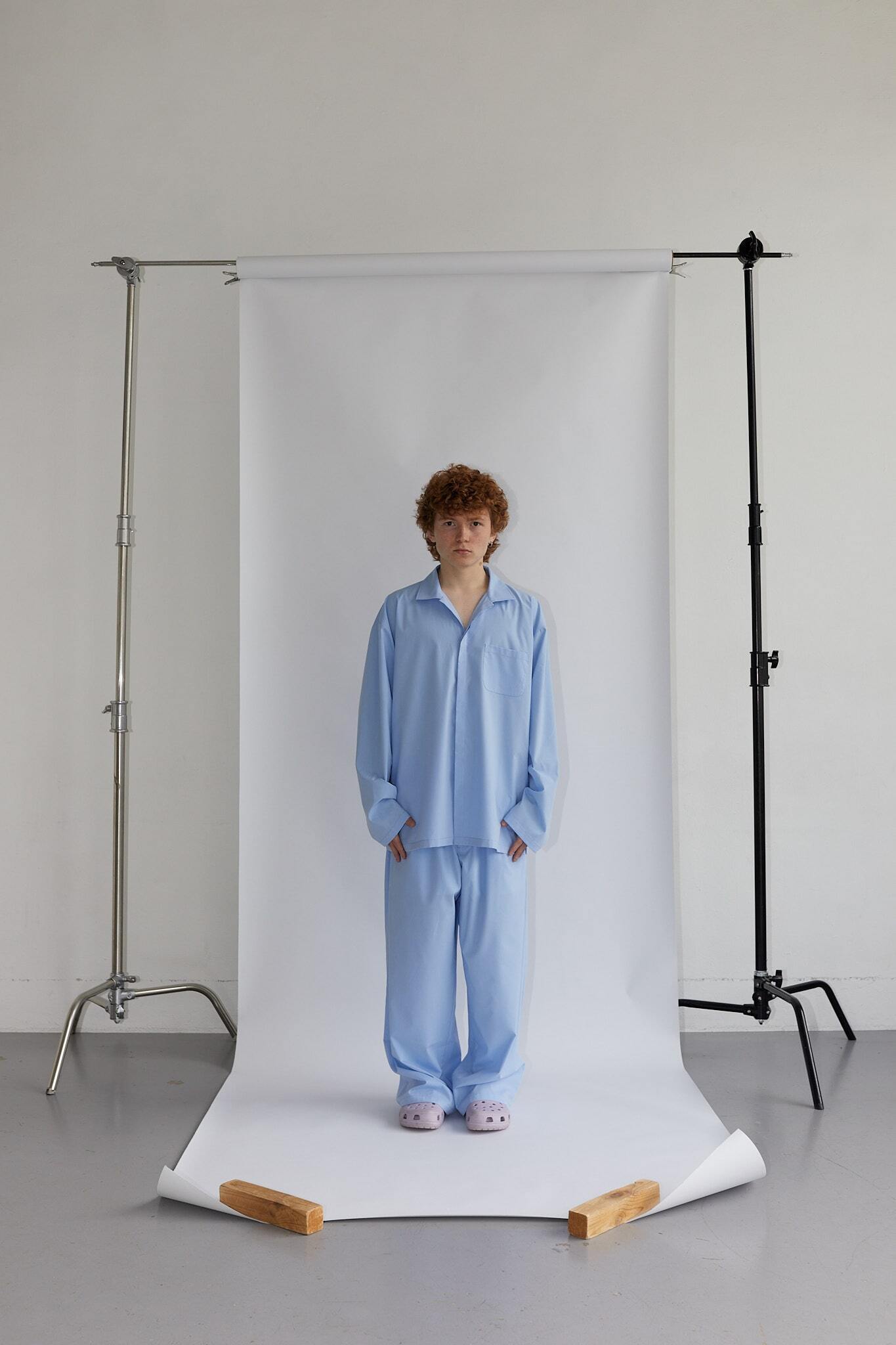 Пижама из хлопка с небольшим количеством эластана, унисекс-кроя, свободная и дышащая — отличный вариант на любое время года. Удобно, что можно купить как комплектом, так и по частям, а ещё выбрать расцветку — есть голубая, белая и голубая в белую полоску.