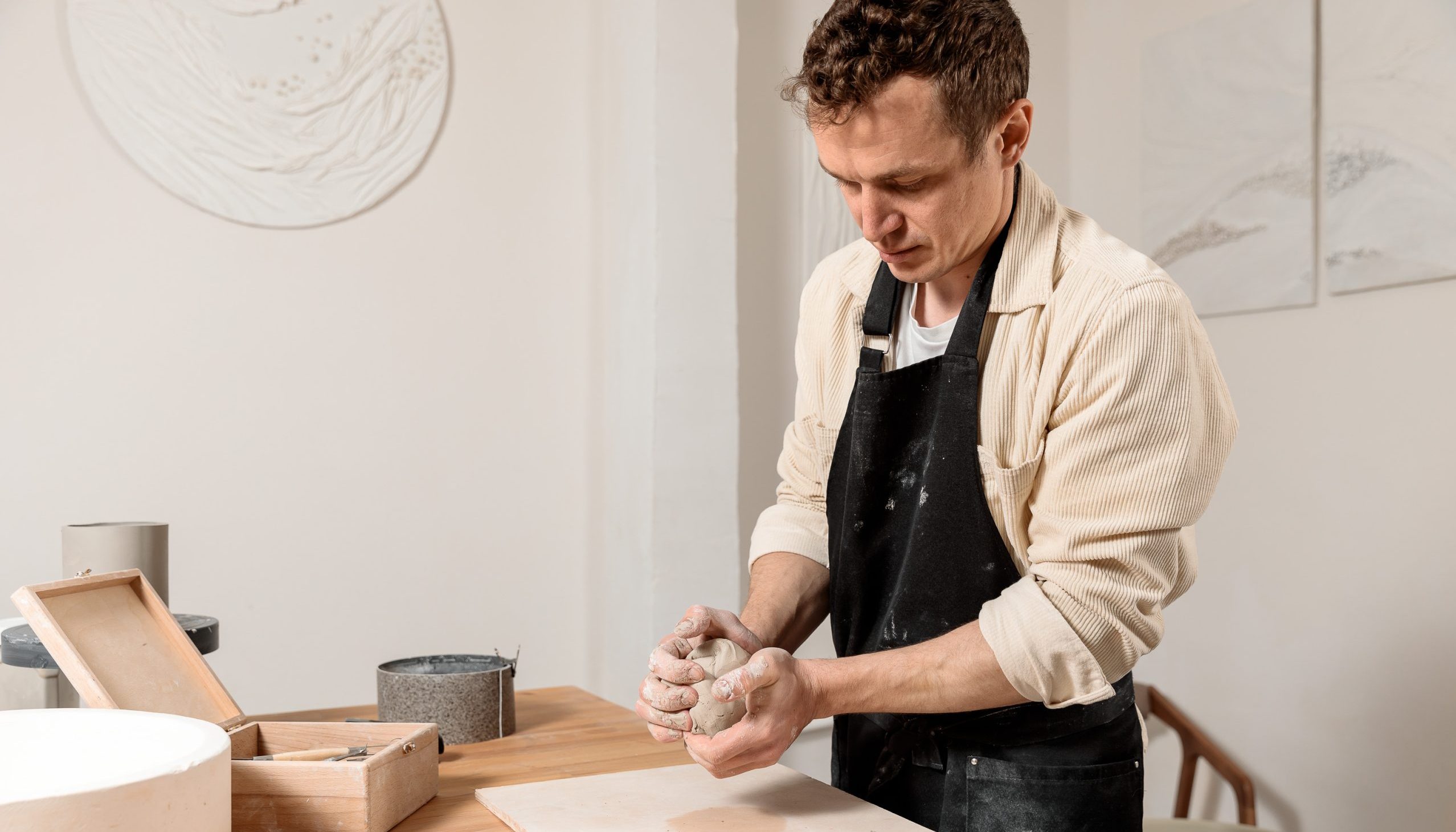 Ещё во время обучения, в свободное время, он посещал кафедру скульптуры и пробовал лепить, но оставил керамику до 2023 года. Пока пробовал сделать комплект розеток для себя, заинтересовался предложениями на российском рынке и не нашёл аналогов: «Я увидел в этом потенциал, — объясняет создатель ателье. — Раз никто этого не делает, я понял, что в России буду, наверное, первым, кто освоит это».