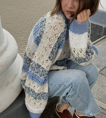 Это платье сделано вручную, как и всё, что можно найти у петербургского бренда: но на этом его история не заканчивается! Основательница марки Альфия Айситулина изготавливает платья только из советских тканей. Конкретно это — из шерсти красивого серо-голубого цвета, которая будет греть свою новую хозяйку не хуже, чем мысль о сохранении природы!